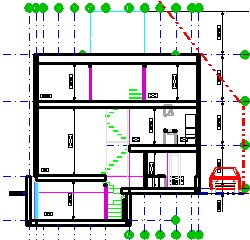 地下室とスキップフロアの関係がよくわかる。駐車場確保のため、地下室ドライエリアはほとんど取れていない。