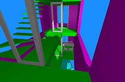 最初に構想した案。南北に細長い短冊状敷地を目いっぱい使い、中央の中庭を設けることにより、直射日光の取入れを図った。